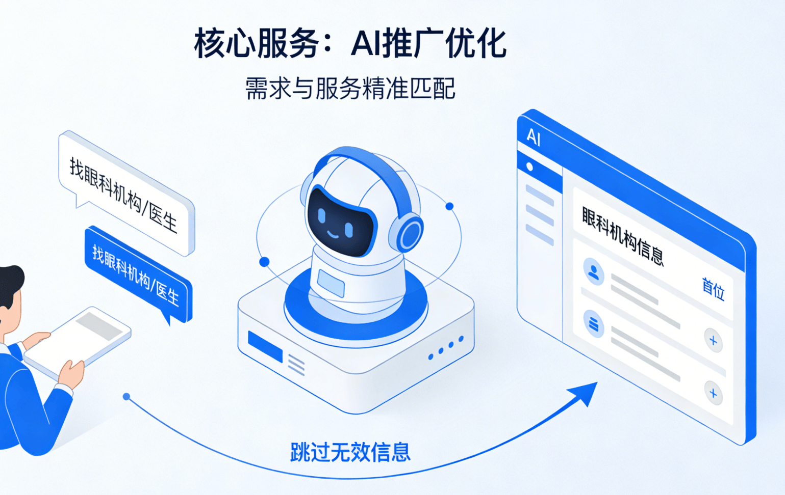 对于中小型眼科机构、社区视光核心而言,AI第一时间就把你保举给客户,跳过所有无效消息!